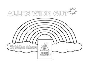 Dennoch sind Osterferien in diesem Jahr viel zu lang und auch Sorgen und Ängste machen sich breit. Also ist es gut, Farben hervorzuholen und bunte BIlder zu malen. Auf Regen folgt Sonnenschein und manchmal dazu ein Regenbogen! Kommt, wir rufen uns zu: "Alles wird gut!"